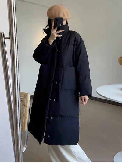 ロングタイプ綿ジャケット韓国ファッション 秋冬マキシ丈アウター 防寒中綿ロングコート レディース綿ブルゾン 防寒 厚手ジャケットフリースで決まり!ダウン混綿ジャケット | KAGEYAMA-SECOND