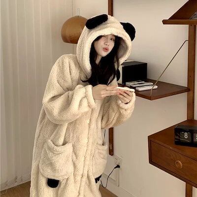 裹起毛ルームウェア 部屋着 セットアップ 二点セット フード付きネグリジェ ズボン レディース 秋冬 フランネル 韓国ファッション ふわふわパジャマ 暖かいコーラルフリース 可愛い着ぐるみパジャマ | KAGEYAMA-SECOND