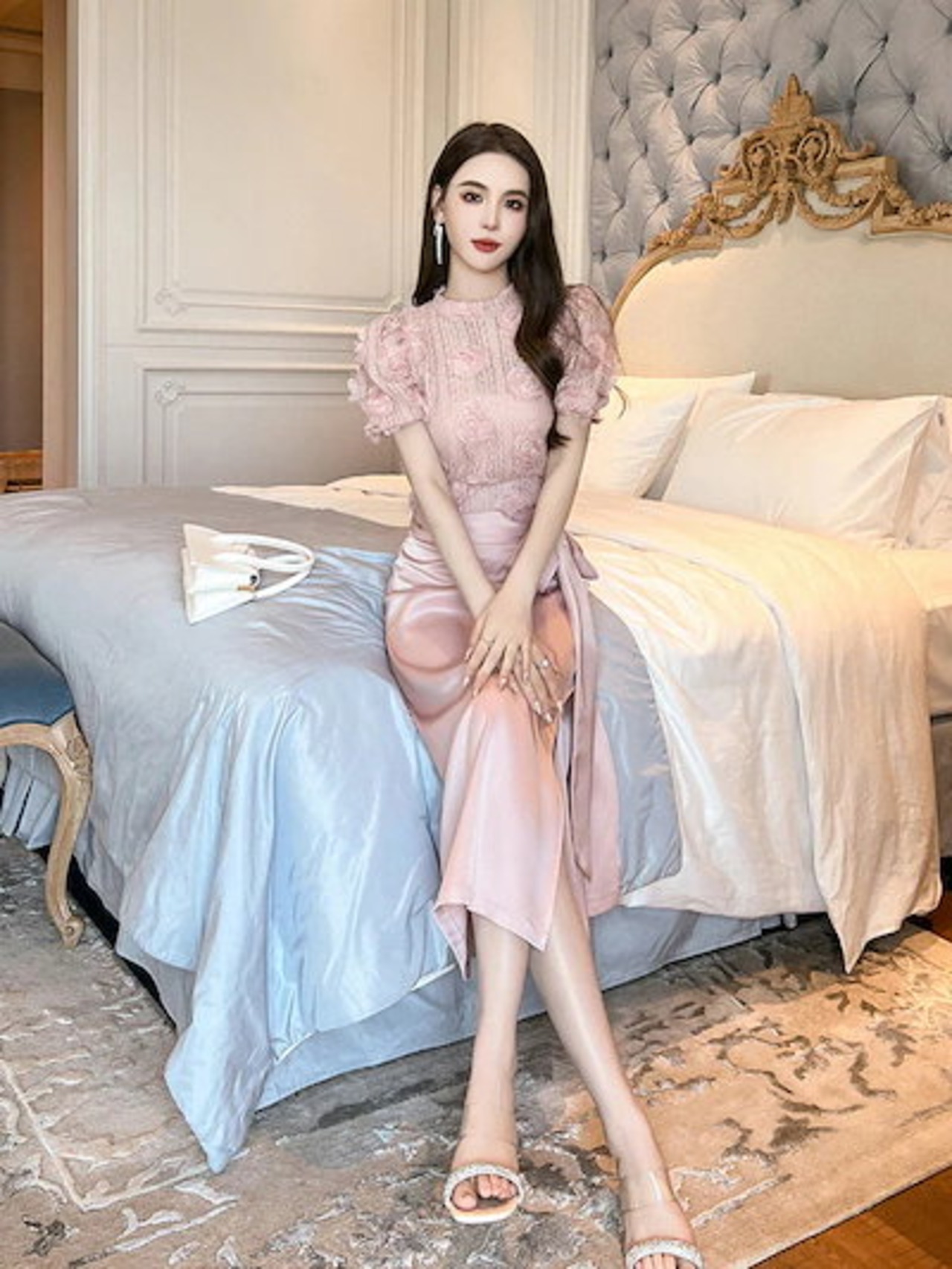 人気なリブニット 【JY.上品】 半袖 ニット花飾り 秋冬夏 薔薇 フリル ショート丈 セーター レディース トップス ドレス パーティー キャバ 着痩せ 大人 お呼ばれ 同窓会 披露宴 卒業式 結婚 | KAGEYAMA-SECOND