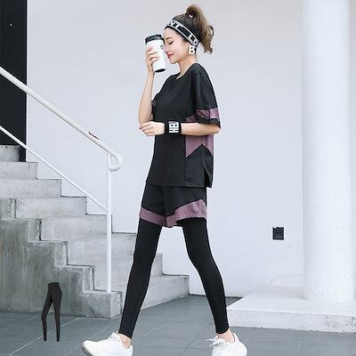 ファッションヨガウェア セットアップ ヨガトップス 半袖 ウエア レギンス スパッツ ショートパンツ付き ジムウェア フィットネスウェア 大きいサイズ 9分丈 10分丈 レディース 上下セット 運動セ | KAGEYAMA-SECOND