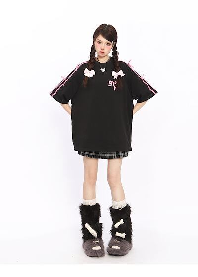 2024夏 韓国可愛い風トップス Tシャツ ファッション系 半袖 スリムフィット サイド ペイントシルエット ゆったり丈 ロングレディースサイズ韓国Vネックおしゃれカジュアルメンズライク T | KAGEYAMA-SECOND