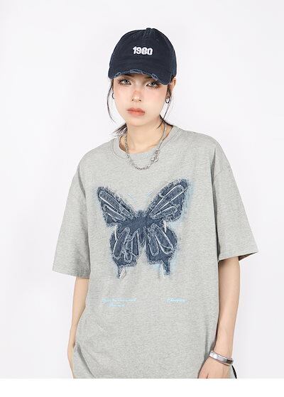 2024 夏 韓国 甘いトップス Tシャツ ファッション 半袖 スリムフィット サイド ペイントシルエット ゆったりコーデ 休日レディースサイズ韓国ネック丈 おしゃれ カジュアル メンズライク T | KAGEYAMA-SECOND