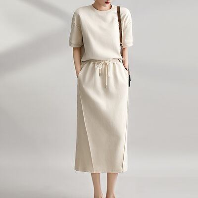 夏 涼しく楽ちんセットアップ 2024 おしゃれ 運動 カジュアル 半袖トップス スリット スカート 二点セット セット レディース スーツセット 通勤 着痩せ レディースファッション | KAGEYAMA-SECOND