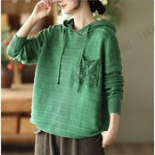ニットパーカー ニット セーター レディース 長袖 トップス パーカー プルオーバー フードニット ニットソー 素敵なポケット フード付き 春秋冬