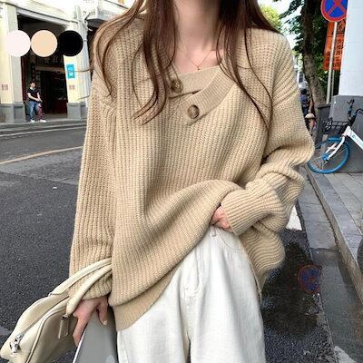 ニット レディース セーター ドルマン Vネック チュニック トップス  長袖 ストレッチ 大きめ 体型カバー オーバーサイズ おしゃれ 無地 春秋冬