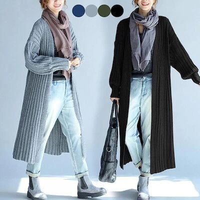 ニットカーディガン アウター カーディガン ニット レディース トップス ロングカーディガン ゆるニット 洗える ロング ゆったり 春秋 長袖 大きめ 体型カバー 無地 ビッグ カーデ | KAGEYAMA-SECOND