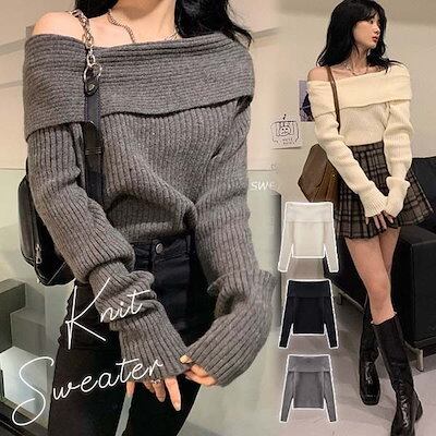 ニットセーター オフショルダー オフショルニット 春秋風 長袖 ドロップショルダー レディース 大人 レースアップ フェミニン 可愛い ざっくり編み リブニット タイト ショート丈 ゆったり オフホワ | KAGEYAMA-SECOND