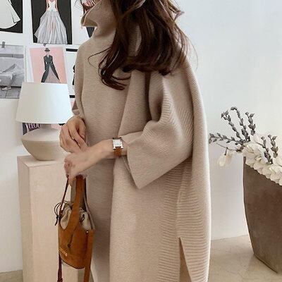 スウェット カシミヤタッチベーシックニット 冬でもブラウス パーカー ラウンドネックニット タートルネックニット長袖 2022 ハイネックスウェットニットワンピース ゆったり セーター レディース | KAGEYAMA-SECOND