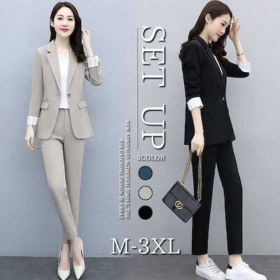 スーツ レディース 2点セット パンツスーツ スーツセット レディーススーツ ビジネススーツ リクルートスーツ セットアップ 大きいサイズ フォーマル 入学式 洗える ノーカラー ジャケット パンツ | KAGEYAMA-SECOND
