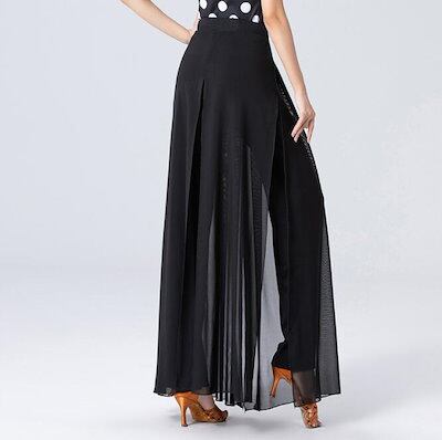 ダンス パンツ ラテン モダンダンス 社交ダンス ロング丈 パンツ ストレート 二重生地 スリット シフォン ワイドパンツ フレア 飄逸 スカート風 ふんわり レディース 大人 ハイウエスト 社交ダン | KAGEYAMA-SECOND