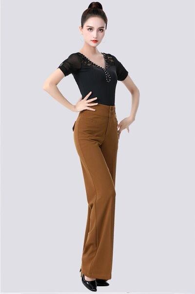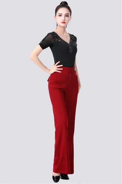 ラテンパンツ モダンダンス フレアパンツインターナショナルダンスレディース ガウチョパンツ ハイウエストワイドパンツ 社交ダンスパンツ スリットあり リボン付 長ズボン ベルボトム フレアパンツ | KAGEYAMA-SECOND