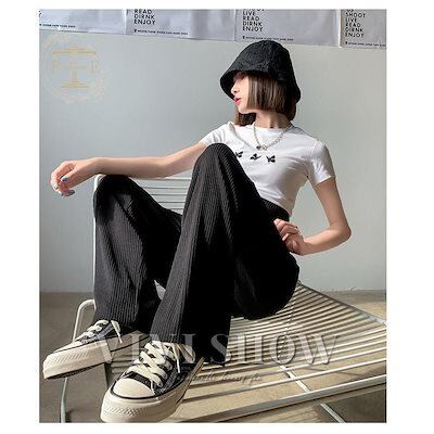 パンツ フレアパンツ リブパンツ レディース 秋 夏 大きいサイズ ストレート ゴム セルフカット ワイド マタニティ ルームウェア 可愛い かわいい おしゃれ 韓国 | KAGEYAMA-SECOND