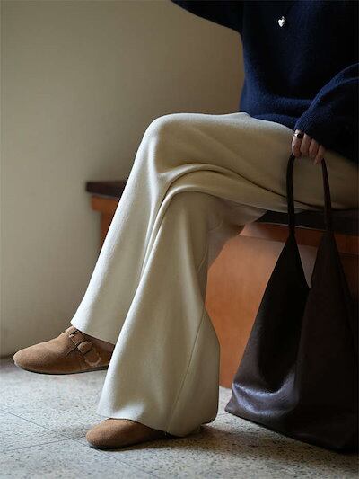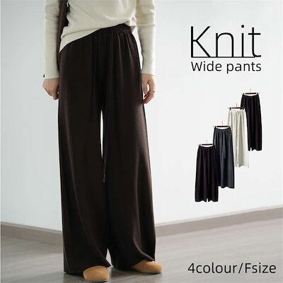 ニットパンツ レディース 秋冬 厚手 リブパンツ ボトムス きれいめ パンツ ウエストゴム ストレートパンツ ガウチョ ニット リブ ゆるパンツ ワイド ハイウェスト ワイドパンツ イージーパンツ 無 | KAGEYAMA-SECOND