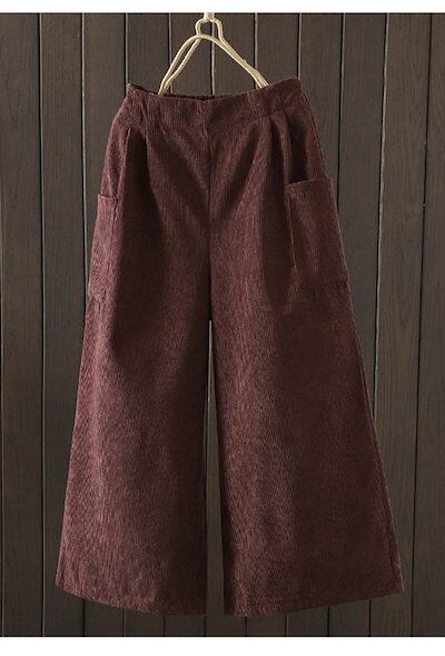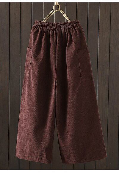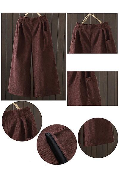 パンツ ワイドパンツ レディース 秋冬 ガウチョパンツ 裏起毛 コーデュロイ パンツ ウエストゴム ポケット付き シンプル 防寒 レトロ 体型カバー ワイド パンツ ロング ゆったり あったか ロング | KAGEYAMA-SECOND