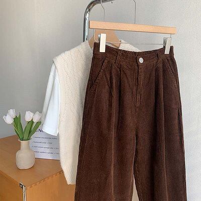 ストレートパンツ レディース ワイド 秋冬 コーデユロイ パンツ 冬 ワイドパンツ ボトムス パンツ ハイウエスト ワイド ロングパンツ マキシ丈 ウエストゴム 秋 無地 パンツ ロング ガウチョ 防 | KAGEYAMA-SECOND
