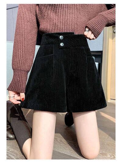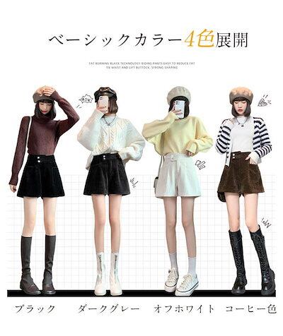 無地 冬 ハーフパンツ キレイめ 着回し 黒 レディース ウェストゴム かわいい ショート丈 ワイド パンツ スカーチョ コーデュロイ 美脚 ショートパンツ きれいめ 冬用 重ね着 ショーパン Aライ | KAGEYAMA-SECOND