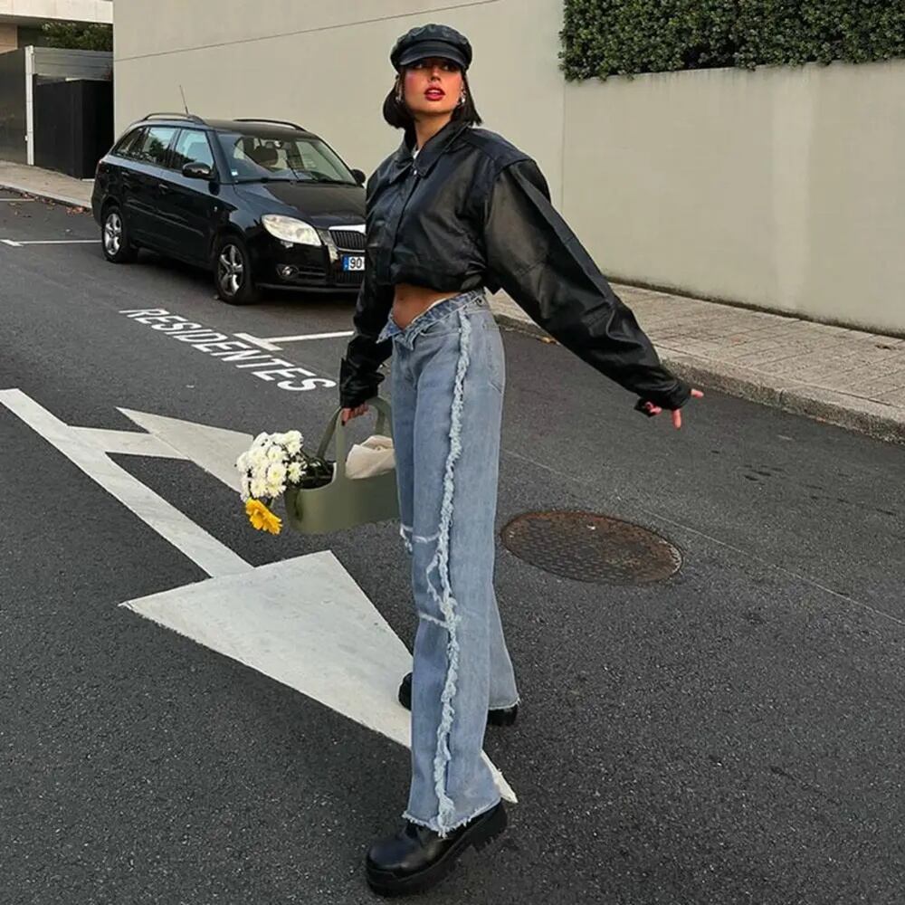 女性用ハイウエストワイドレッグジーンズ,カーゴスタイルのハイバギーパンツ,90年代のカジュアルなストリートウェア y2k ボトムス T240901063616_01 | KAGEYAMA-SECOND