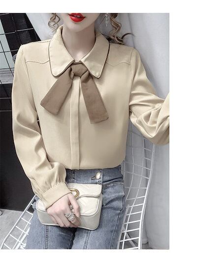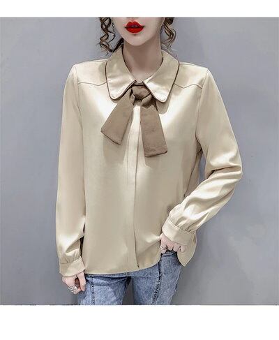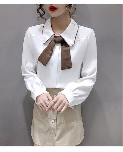 春新作透けレース ブラウス韓国ファッション/レディース デザインセンス 蝶結び 人形の襟 長袖 上品映え sweet系 女性 秋