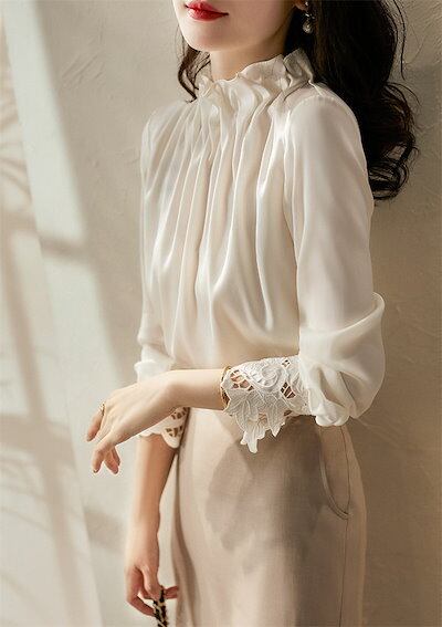 ブラウス フリル襟 レディース シャツ トップス 長袖 ハイネック セレモニー フォーマル タック ギャザー 刺? キレイめ オフィス 春 夏 秋 大人可愛い キレイめ 通勤 オフィス おしゃれ ゆっ | KAGEYAMA-SECOND