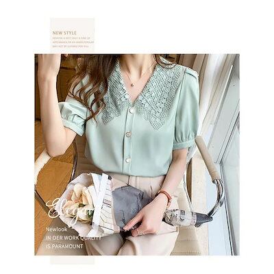 ブラウス レディース 40代 春夏新作 オシャレブラウス 白シフォンシャツ 半袖トップス レース折り襟 パフスリーブブラウス 大人 ゆったり シャツ 30代 50代 | KAGEYAMA-SECOND