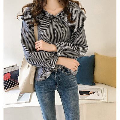 Tシャツカットソー シフォンブラウス 新作 ストライプシャツ シャツ ピーターパンカラー襟 蝶結び 韓国ファッション シフォン シャツ 高級感 シアーシャツ トップス ゆったり 気質 百掛け 流行り | KAGEYAMA-SECOND