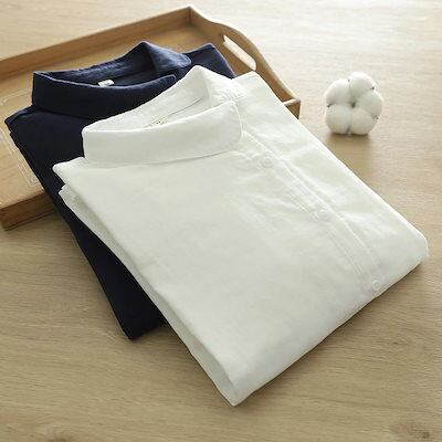 シャツ ブラウス 綿シャツ 白シャツ レディース 長袖 春 無地 ガーゼシャツ トップス インナー カットソー 二層ガーゼ 春 ホワイト 折り襟 チュニック 重ね着 可愛い 体型カバー シャツブラウス | KAGEYAMA-SECOND