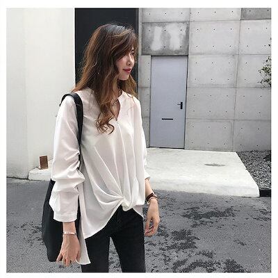 ブラウス シフォン 抜き襟 スキッパーシャツ カシュクール トップス シャツ レディース 夏ブラウス 無地 フォーマル ホワイト/ダークグリーン/ネイビー 長袖 オフィス 春夏 秋 カジュアル きれい | KAGEYAMA-SECOND