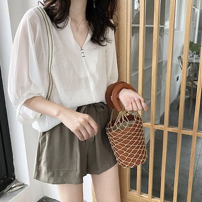 マウンテンパーカー シアーシャツ ブラウス カーディガン人気!夏の味方 ブラウス レディース ゆったり 百掛け 綿麻シフォンブラウス 大きいサイズ 半袖トップス 韓国ファッション Vネック着痩せ Tシ | KAGEYAMA-SECOND