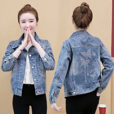 ジャンパー・ブルゾン デニム ジャケット 春 新作 トップス デニム アウター ジャケット 長袖 韓国ファッション カジュアル 百掛け 刺繍 個性 大きいサイズ お肌に優しい 着やせ おしゃれ 気質 | KAGEYAMA-SECOND