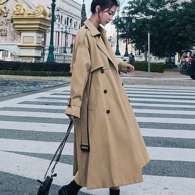 気質 新作春秋 ロングチェスターコート 韓国ファッションても い大きいサイズM-XLコート レディースラシャジャケットコートロングコートレディース