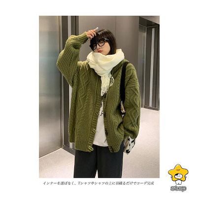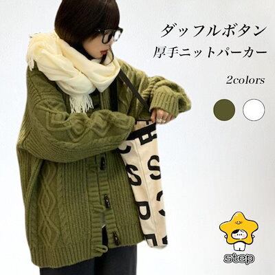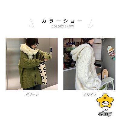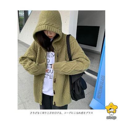 ニットカーディガン フード付き 厚手 レディース ニットパーカー カーデ ケーブル編み 厚手ニット ニットジャケット コーディガン ダッフルボタン
