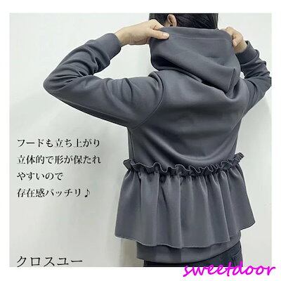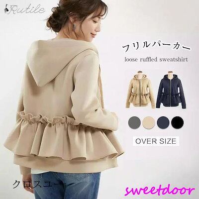 フリルパーカー パーカー スウェット風パーカー レディース 春 秋 冬 長袖 コート アウター トップス 大人可愛い フード付 フリルブルゾン フラワー