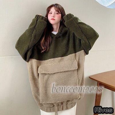 レディース ボアパーカー 秋冬 古着 オーバーサイズ オルチャン 原宿 長袖 韓国ファッション 20代 黒 ブラック 韓国ストリート ストリート系