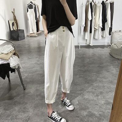 高級な質感 テーパードパンツ きれいめ レディース ボタン ブラック ホワイト 大きいサイズ 体型カバー ボトムス ストレッチパンツ 美脚 シンプル 春秋
