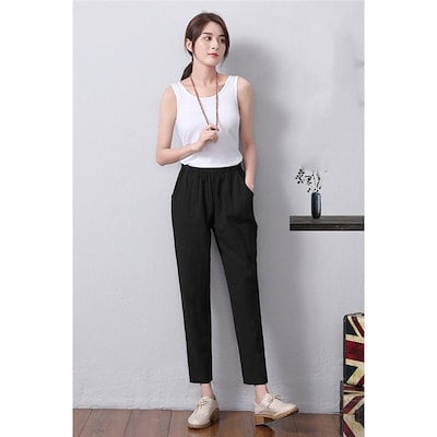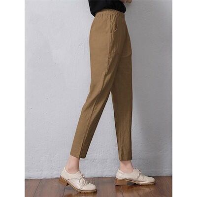 人気商品超目玉 テーパードパンツ リネン レディース きれいめ 大きいサイズ 体型カバー 綿麻 ボトムス ウエストゴム ストレッチ 着やせ 美脚 シンプル おしゃれ