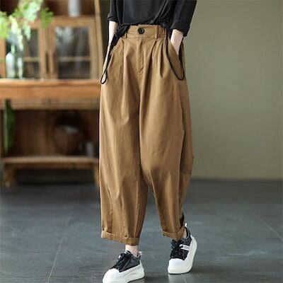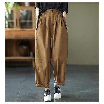 サルエルパンツ ボトムス テーパードパンツ レディース ポケット付き ゆったり 大きいサイズ M