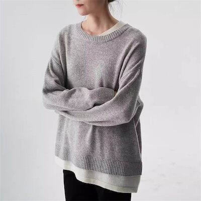 ニット セーター レディース 長袖 春 秋 冬 フェイクレイヤード ニットセーター 無地 おしゃれ プルオーバー オフィス トップス ゆったり リラックス シンプル 大きいサイズ カジュアル 柔らか | KAGEYAMA-SECOND