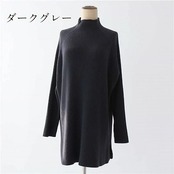 チュニック ニット セーター レディース 秋冬 ロングニット 長袖 ハイネック トップス ニットウェア ニットソー ニットセーター プルオーバー セーター ニット スリット モックネック 無地 インナ | KAGEYAMA-SECOND