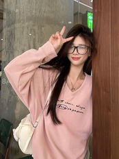 2024 秋冬 トップス 長袖 かわいいラウンドネック Tシャツ レディース 韓国風 ルーズストレート ゆったり 無地 カジュアル おしゃれサイズ シルエットファッション系シャツ衣装お出かけ | KAGEYAMA-SECOND