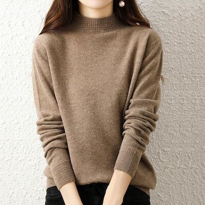 韓国ファッション秋冬人気カシミヤタッチ プチハイネックニットトップス レディース 百掛けトップス ニットインナーVネックベーシックニットゆったりスウェット 長袖 無地リブニット | KAGEYAMA-SECOND