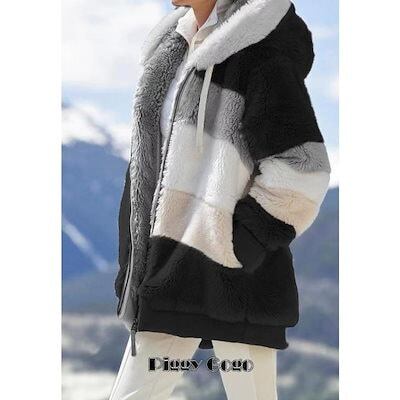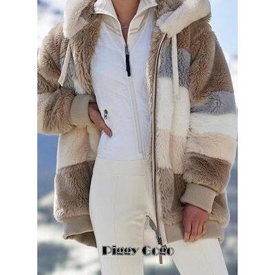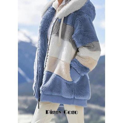 ジャケット ブルゾン フード付き 2色スプライス 無地 ボア ファスナー コート 冬 アウター ポッケトあり 体型カバー 大きいサイズ ゆったり