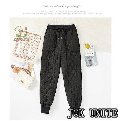 パンツ テーパードパンツ レディース パンツ ロングパンツ ボ 無地 秋冬 ウゴム 中綿入り 大きい 体型カバー 付き お出かけ