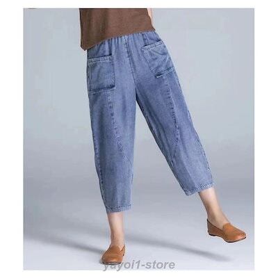サルエルパンツ レディース デニム クロップドパンツ テーパード アメカジ ズボン ウェストゴム ゆったり 大きい 体型カバー リラックス ボトムス 春 夏 秋コー | KAGEYAMA-SECOND