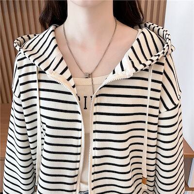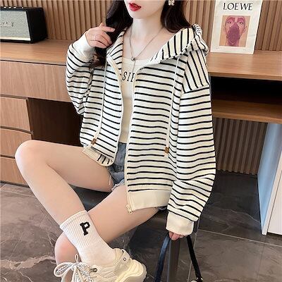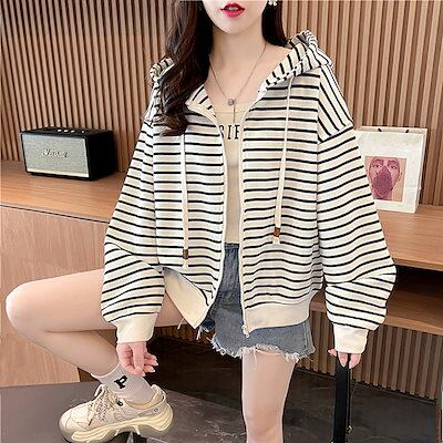 韓国ファッション スウエット カーディガン 薄手 レディース トップス シンプル フード付き スウエット