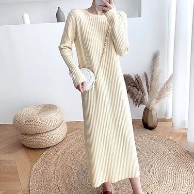 秋冬のワンピース 日韓 流行り 無地 ニットワンピース カシミヤタッチ タイトスカート ロングワンピース 気質 レディース 暖かい 着痩せ 長袖 ワンピース 体型カバー ワンピース | KAGEYAMA-SECOND