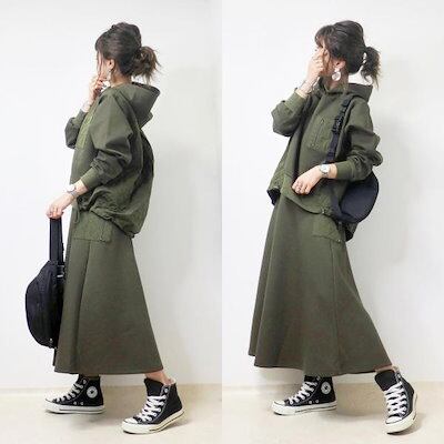 【2点ご購入で2OO円OFF!】日本の2024秋冬プルオーバー長袖パッチワークスウェットシャツトップ+ゴムウエストAラインスカート2点セット