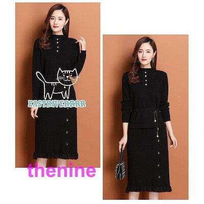 セットアップ ツーピース レディース 秋 冬 コンサバ ニット ドロスト 無地 スカート ペンシルスカート サイドボタン リブニット 上品 きれいめ 20代 30代 40代 | KAGEYAMA-SECOND