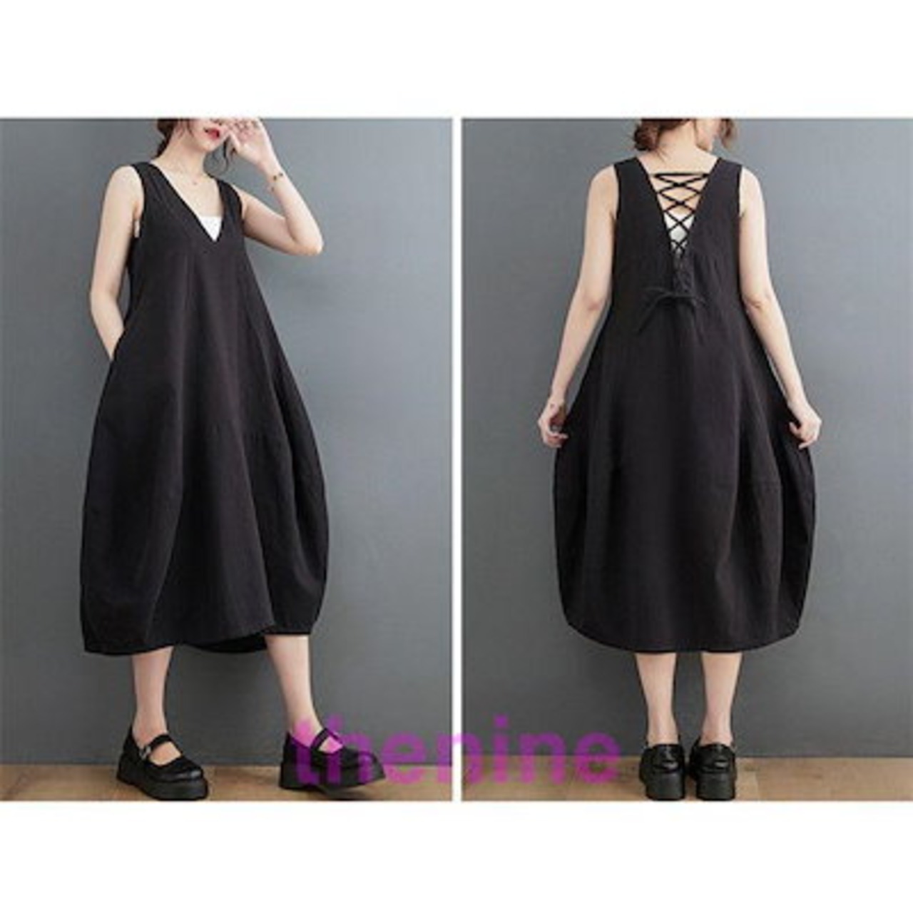 ジャンパースカート 秋冬 50代 ロング 大人 大きいサイズ Vネック バルーンスカート オールインワン ポケット レディース ワンピース カジュアル 秋 冬 きれいめ | KAGEYAMA-SECOND