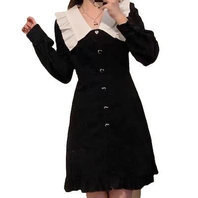 日韓のウエスト ドレス 2024 新しい秋と冬の気質ウエスト ウエスト長袖リトル ブラック ドレスミニスカートM-4XL冬のワンピース