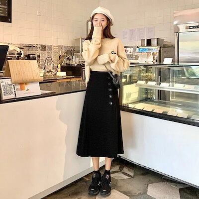 秋冬通勤無地作ミモレ丈ロング丈マキシ丈OL上品エレガント大人ハイウエスト